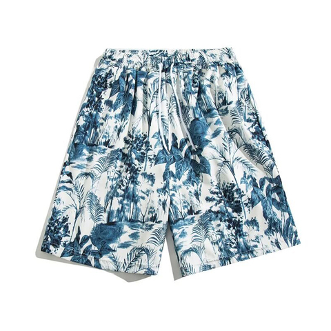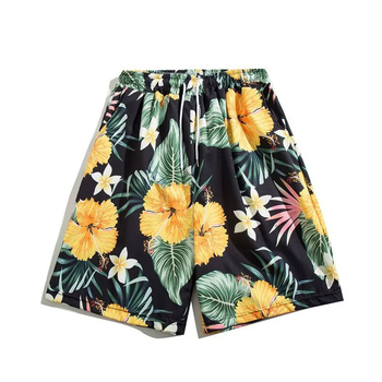 Pantalones cortos de playa de verano 100% algodón con patrón Hawaiano de marca personalizada precio al por mayor adultos jóvenes adolescentes tema tropical moda informal